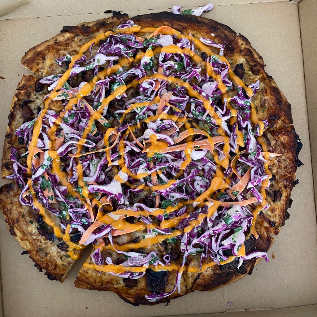 All of our pizzas start with our signature crust, and are topped with the highest quality plant-based ingredients.
